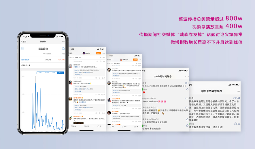 基于产品的核心传播点,深度挖掘产品/传播人群/KOL标签,筛选@黎贝卡的异想世界/@原来是西门大嫂/@大Mia的时尚账号/@满满Cyim/@大概是井越/@Avafoo/@程晓玥YvonneChing7位时尚类KOL达人,围绕产品造型能力多场景化展示,进行视频及内容原创,并充分调动自有流量渠道扩散,深度影响种草目标人群。